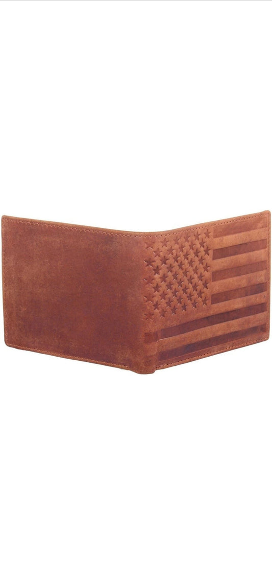Brown American Flag Leather Men's Wallet – Distinctive Patriotic Design | Premium Genuine Leather Wallet for Men with RFID Blocking | Compact and Durable Bifold Wallet for Everyday Use