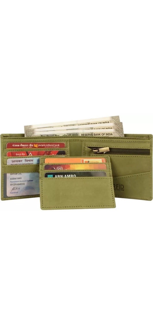 Green Multi-Pocket Leather Men's Wallet – Stylish, Durable, and Spacious Wallet for Everyday Use | Genuine Leather Wallet with RFID Blocking | Ideal Gift for Men – Classic Bifold Wallet Design