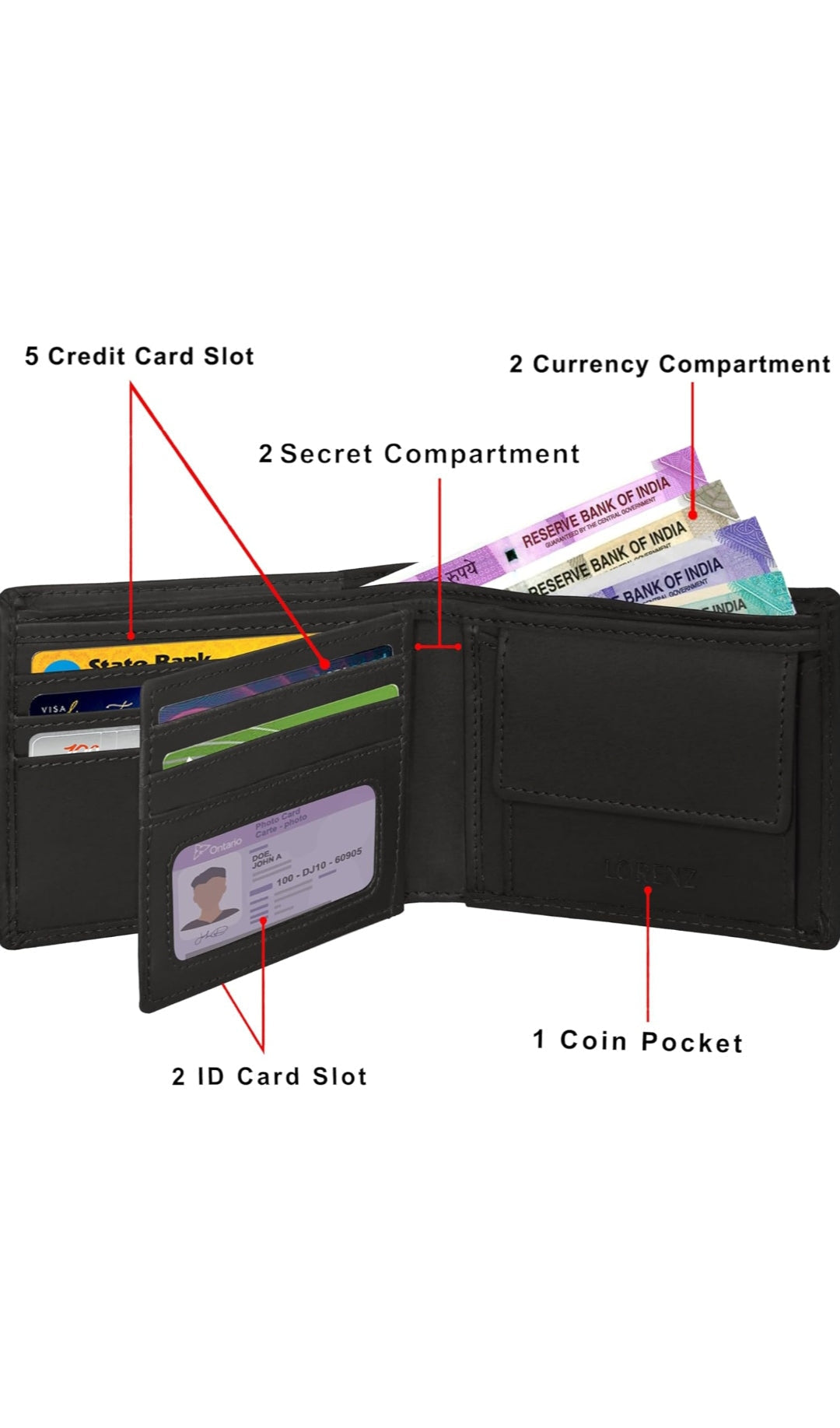 Genuine Leather wallet with multiple pockets for cards & cash