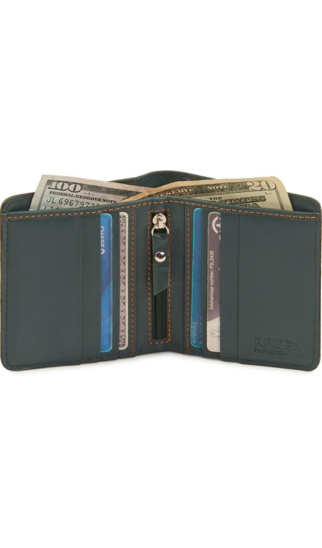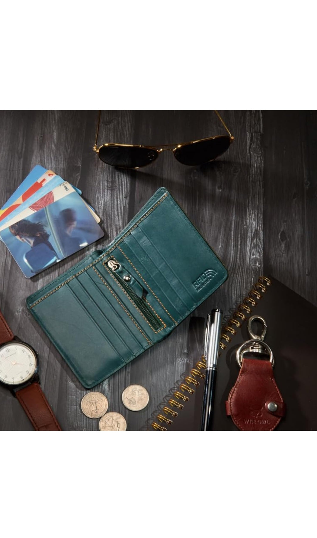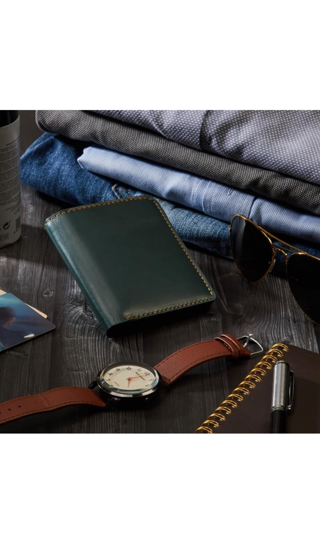 HIGH-QUALITY LEATHER: Crafted from genuine green leather, this wallet offers a unique and durable look, showcasing elegance and quality.